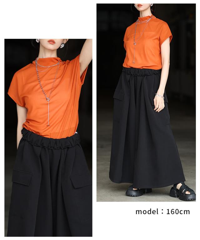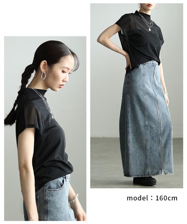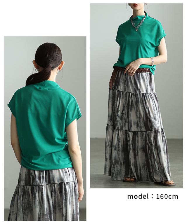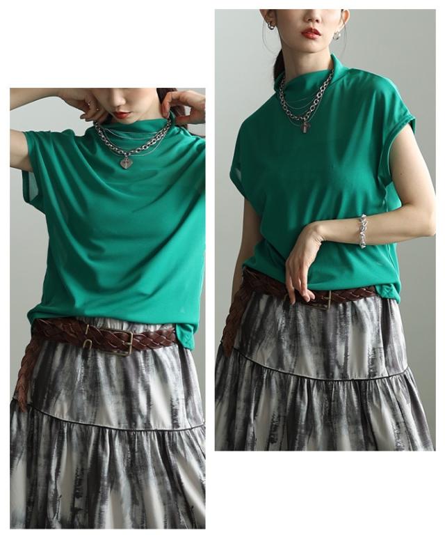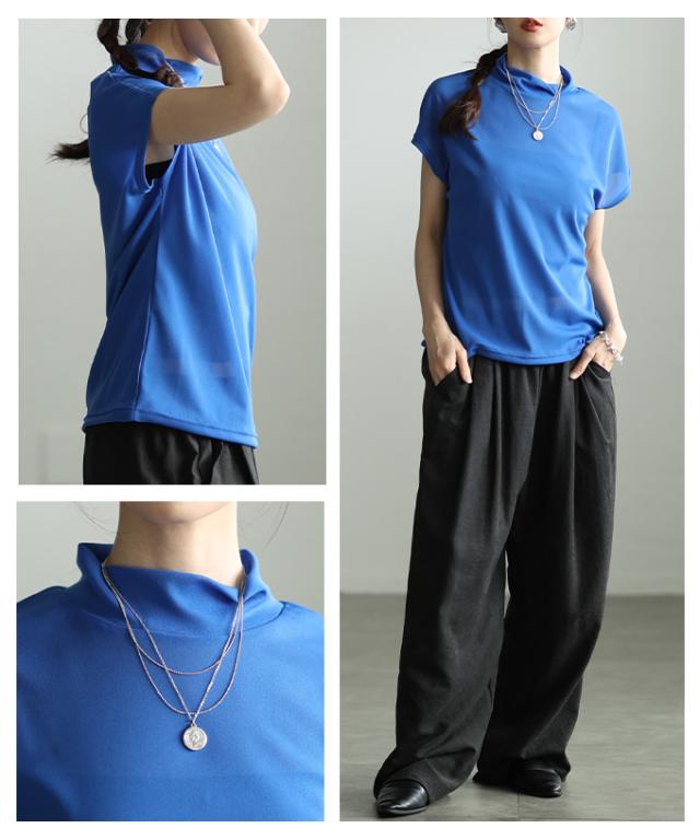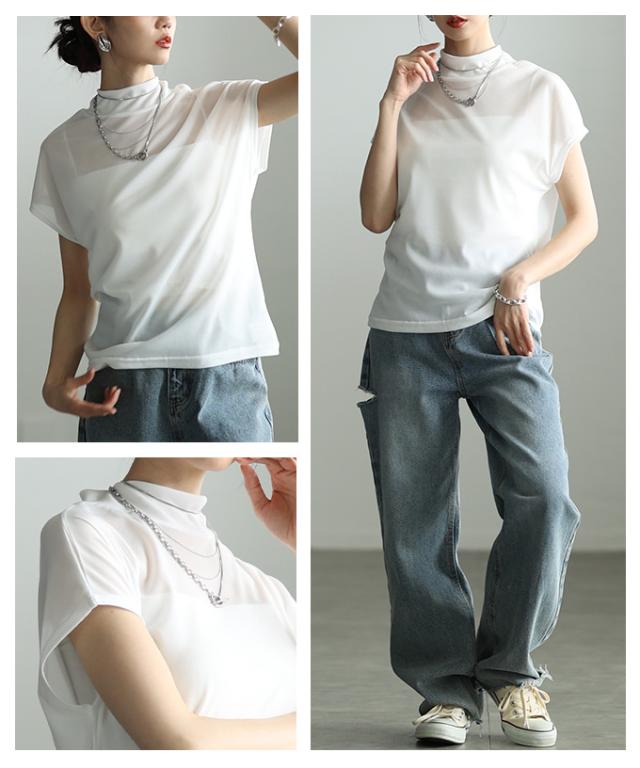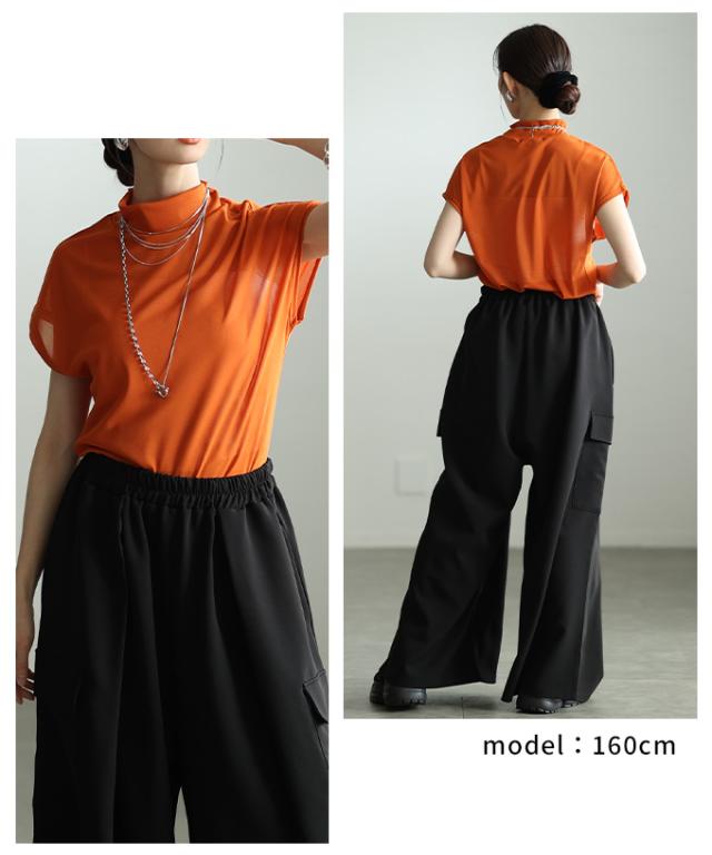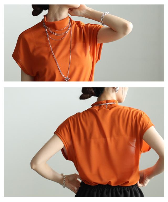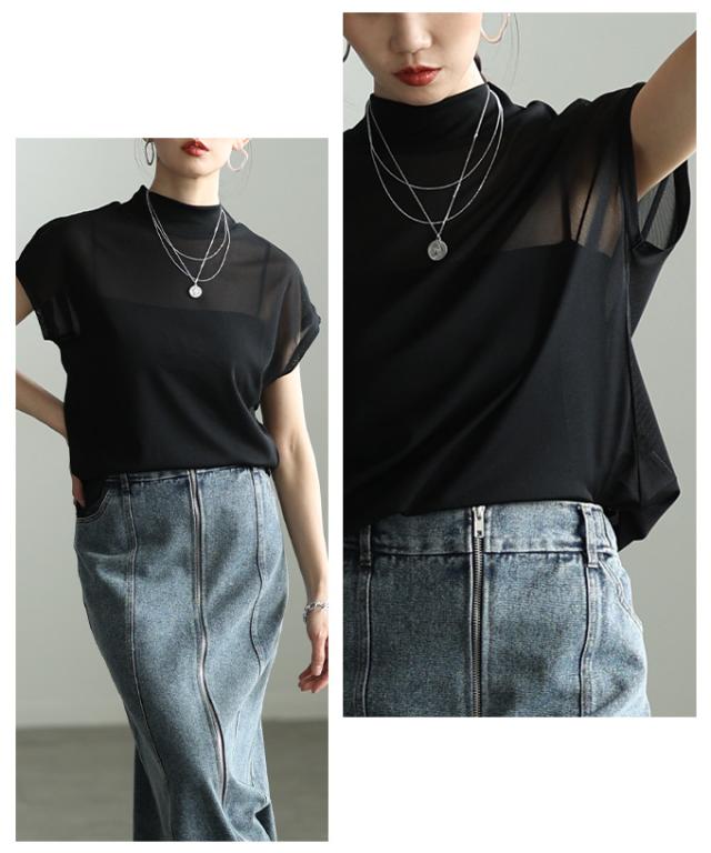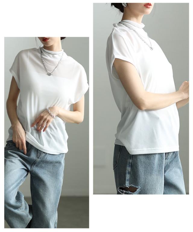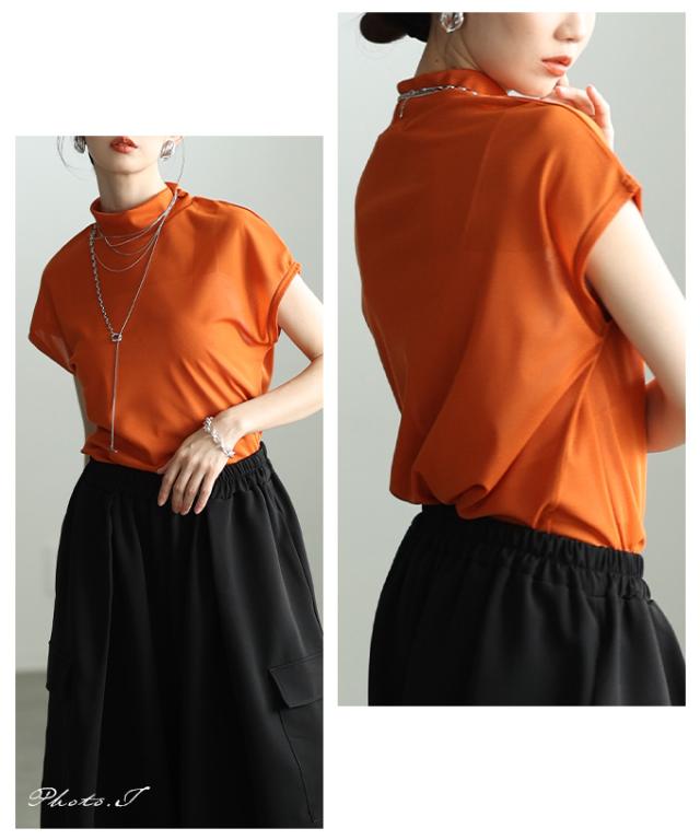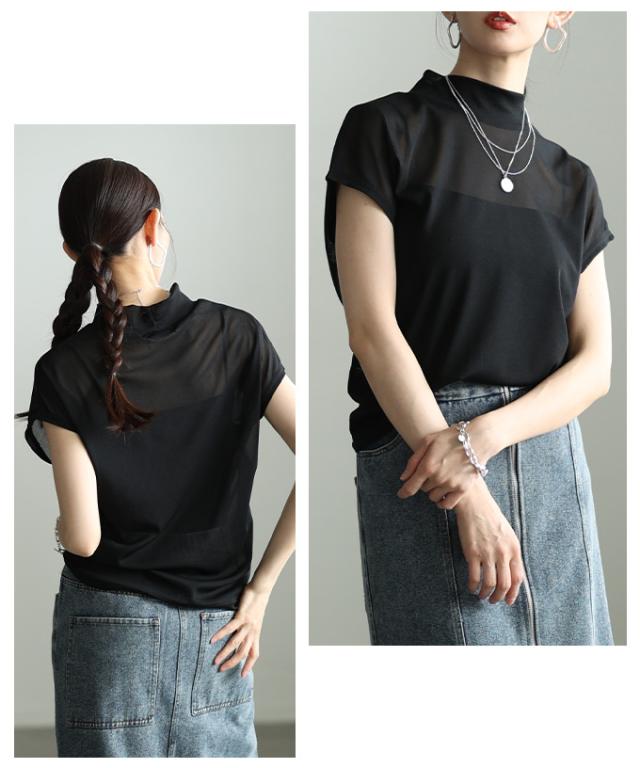 特徴: シアー ハイネック モックネック フレンチスリーブ