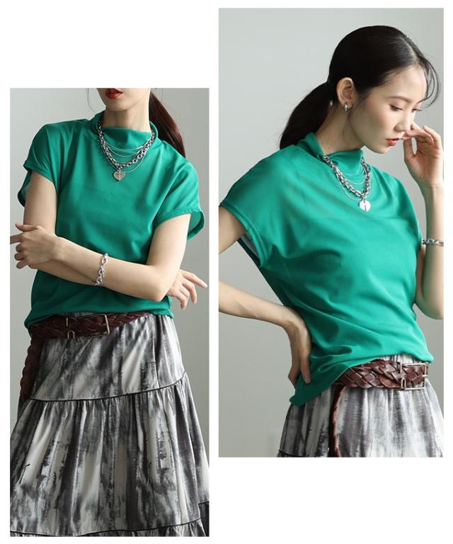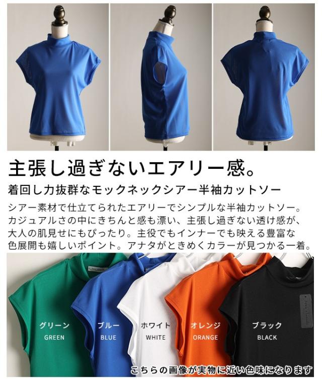 春新作 着回し力抜群なモックネックシアー半袖カットソー レディース ファッション トップス カットソー シアー モックネック ハイネック 半袖 フレンチ カラバリ 30代 40代 50代 60代 アラモード alamode otona 大人 cawaii 可愛い 洋服 かわいい服 almam-1121