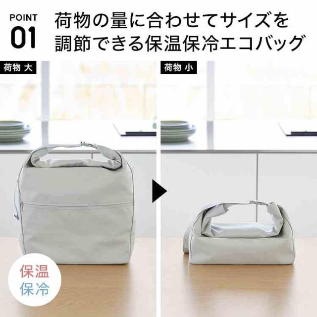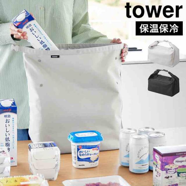 山崎実業 量によって調節できる保冷&保温ショッピングエコバッグ タワー 公式 tower 101656 10657 ホワイト ブラック エコバッグ 折りたたみ 保冷 コンパクト 丈夫 おしゃれ シンプル ショッピングバッグ 肩掛け 手提げ マチあり ポケット付き 洗濯機OK 洗える 黒 白 正規品