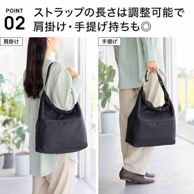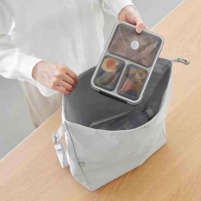 荷物の量に合わせてサイズ調節ができる、日常使いにちょうどいい保冷保温エコバッグです。コンパクトに折り畳めるため、持ち運びやすく便利。仕事帰りや休日のお出かけにも活躍します。ショルダーストラップは長さ調節が可能で、肩掛け・手提げのどちらにも対応。洗濯機OKで、ファスナー付きポケットも付いています。