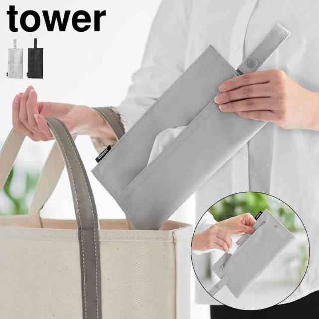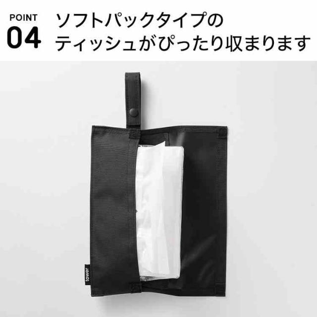山崎実業 くず入れ付き折りたためる携帯ティッシュケース タワー 公式 tower 10735 10736 ホワイト ブラック ティッシュケース 吊り下げ 車 持ち運び ベビーカー シンプル おしゃれ ソフトパック ティッシュカバー 掛け ティッシュホルダー コンパクト 携帯ゴミ入れ 正規品