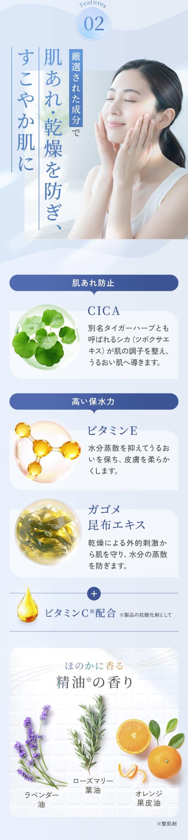 防腐剤・合成香料・合成色素・石油系界面活性剤・紫外線吸収剤を一切使っていません。※弱酸性、製造年月日入。