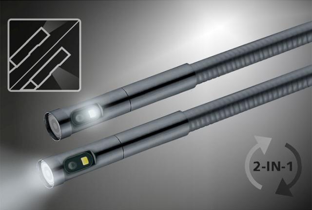 防水仕様のカメラ先端部には、LED(フロント×6, サイド×1)が搭載されており、暗所の撮影にも対応します。