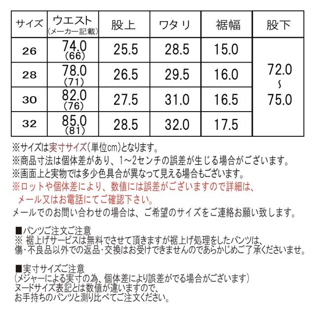 (ヌードサイズ表記とは数値が違いますので、お手持ちのパンツと測り比べてご注文ください。)