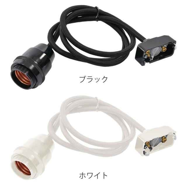 ランプシェード専用コード 1m 別売り 照明用 ペンダントライト用 ( ランプシェード ペンダントライト ソケット コード 口金 E26 LED対応 吊り下げ照明 天井取付 吊り下げ 1灯 アジアン インテリア ホワイト ブラック )