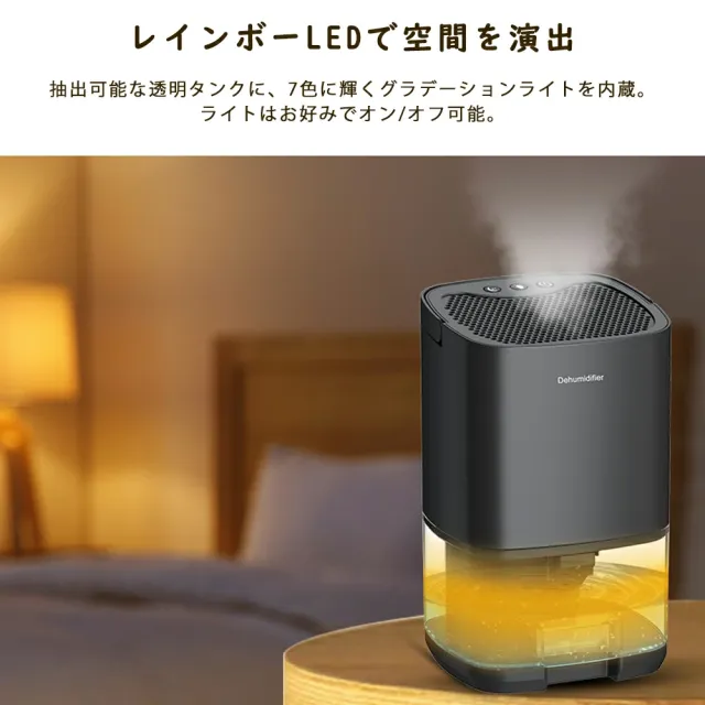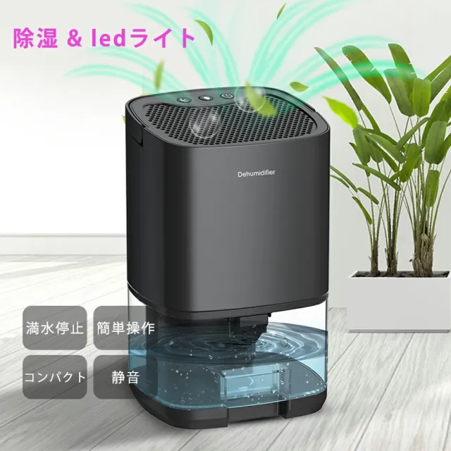 除湿機 小型 デシカント式 衣類乾燥除湿機 1000mlタンク 強力除湿 LEDライト付き 静音 コンパクト 軽量 部屋干し 梅雨対策 カビ防止 結露対策 タイマー 自動停止 省エネ ホワイト