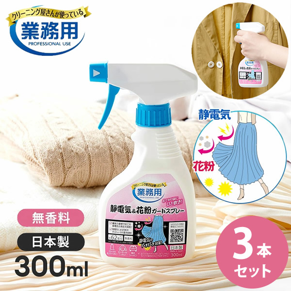 クリーニング屋さんの静電気&花粉ガードスプレー 300ml 3本セット (送料無料) 日本製 静電気 花粉 対策 除去 防止 ガード 無香料 セーター ニット 衣類 車