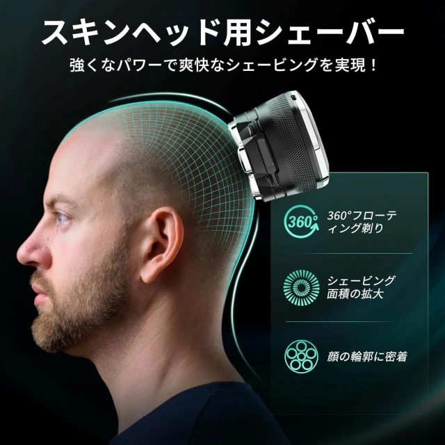 頭髪シェーバー シェーバー マグネット着脱式 6Dスキンヘッド スキンヘッド用 6Dスキンヘッド シェーバー ハゲ用シェーバー 坊主用シェーバー パワーフル 坊主頭 髭剃り 男性用 IPX6防水 スキンヘッド用バリカン メンズシェーバー 回転式 LEDディスプレイ TYPE-C 充電式