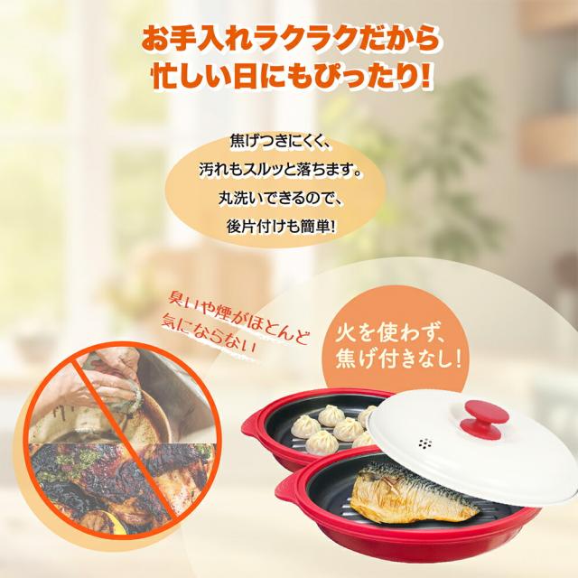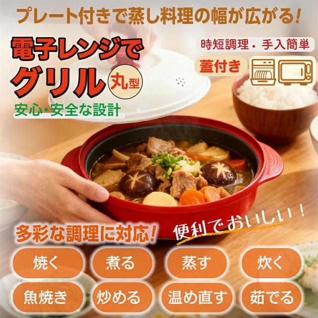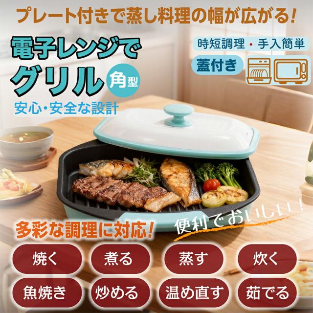 【電子レンジで焼き魚】電子レンジ調理器 電子レンジ専用調理器 丸型 角型 深型 蒸しプレート付 レンジメート 電子レンジ 調理器 グリル 電子レンジで使える 魚焼きグリル グリルクッカー レンジ グリルパン ホットプレート 焼き魚 ふっくら