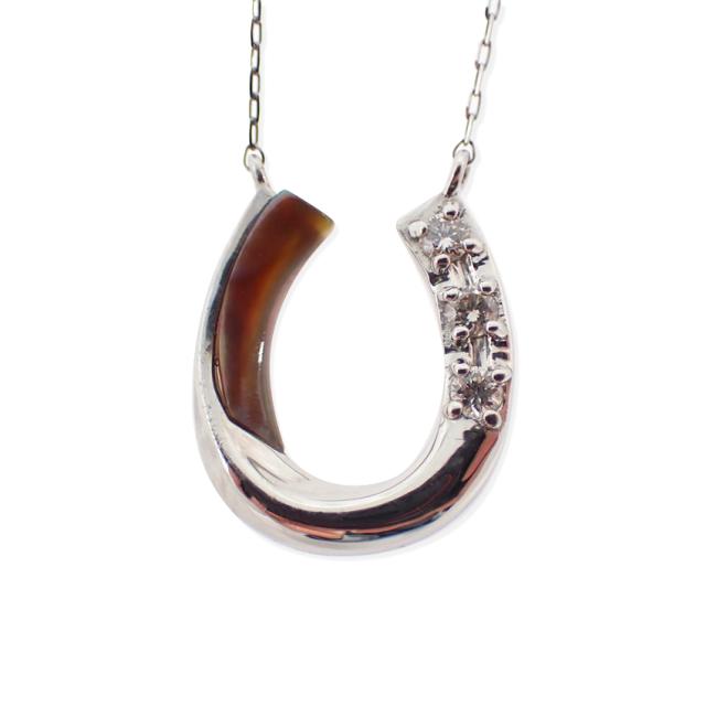 【中古】Pt900 ダイヤモンド シェル ホースシュー/馬蹄 ペンダント/ネックレス/j173-5