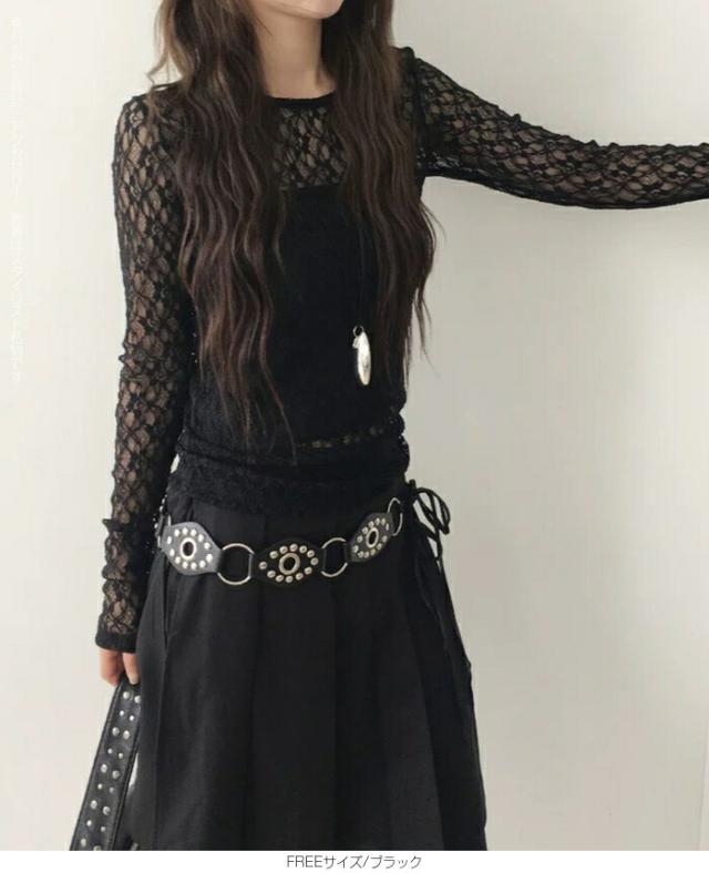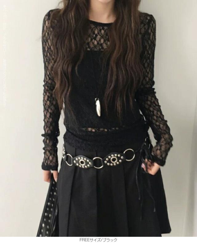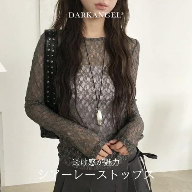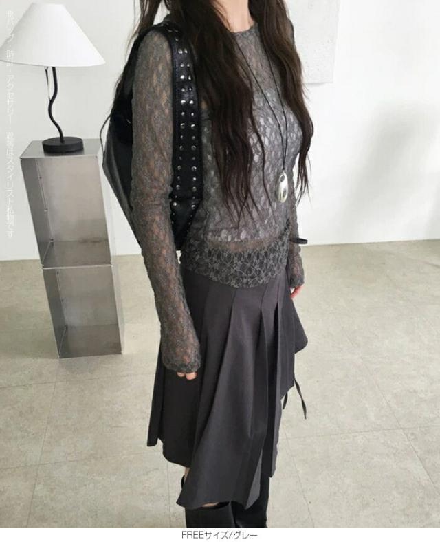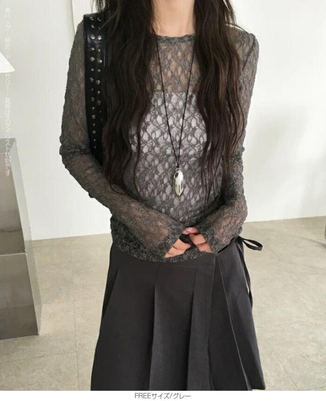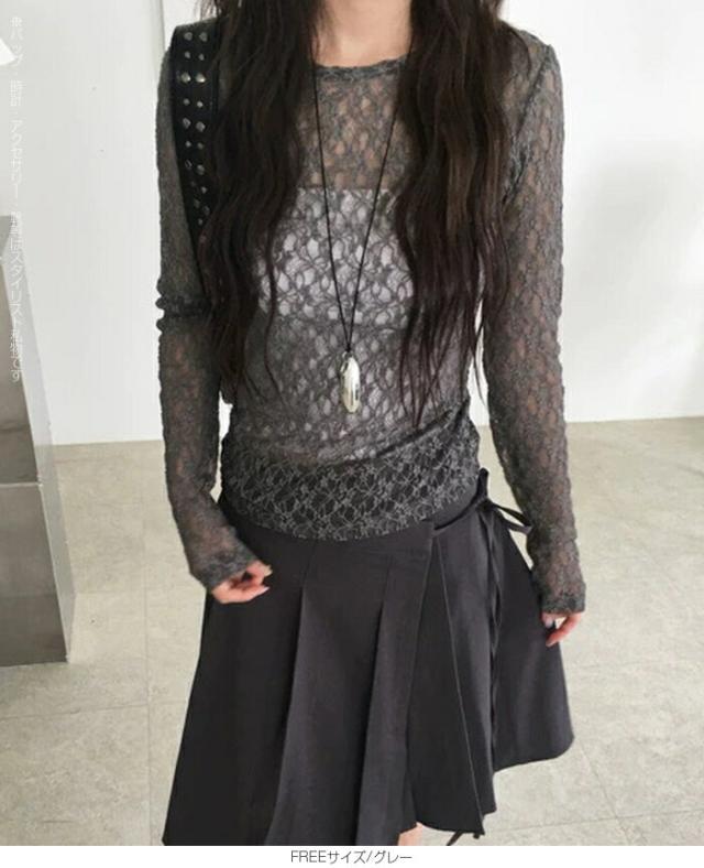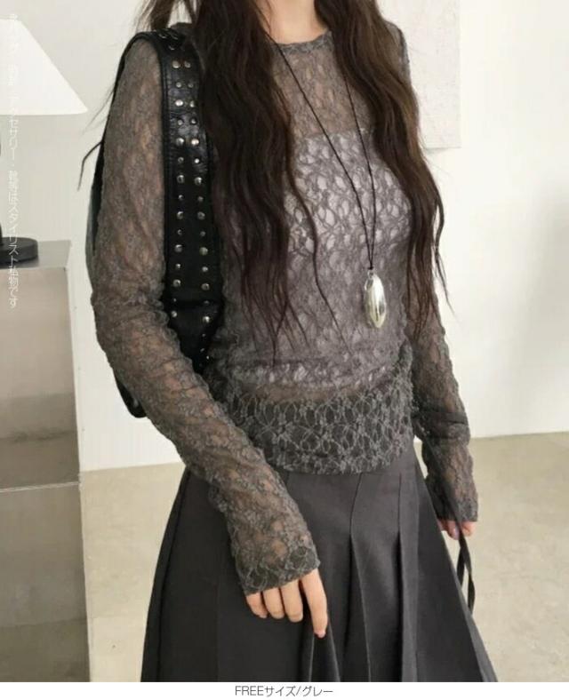 33%OFFクーポン!シアーレーストップス レディース 長袖 透け感 シースルー 総レース レイヤード インナー 重ね着 春 韓国 大人カジュアル 黒 白