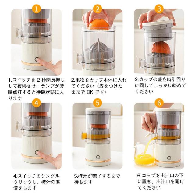 電動シトラスジューサー レモン絞り器 ポータブル フルーツ絞り器 USB 大容量 電動ジュース搾り機 果物の絞り器 操作簡単 水洗い可能 シトラスジ