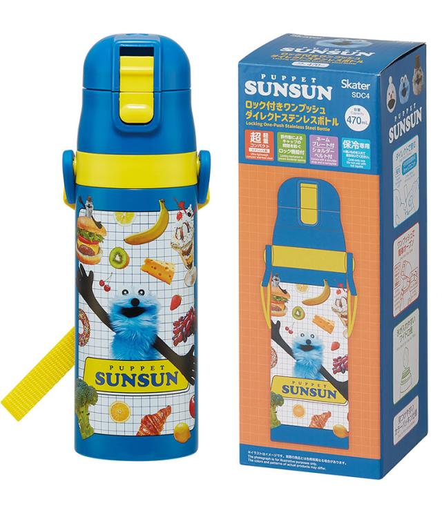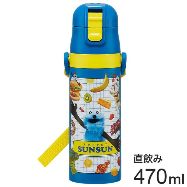 パペットスンスン 新柄 水筒 キッズ 直飲み 470ml 保冷 ステンレスボトル ワンタッチ ショルダー ベルト 紐付き 真空二層 SDC4 スケーター Skater PUPPET SUNSUN【送料無料】