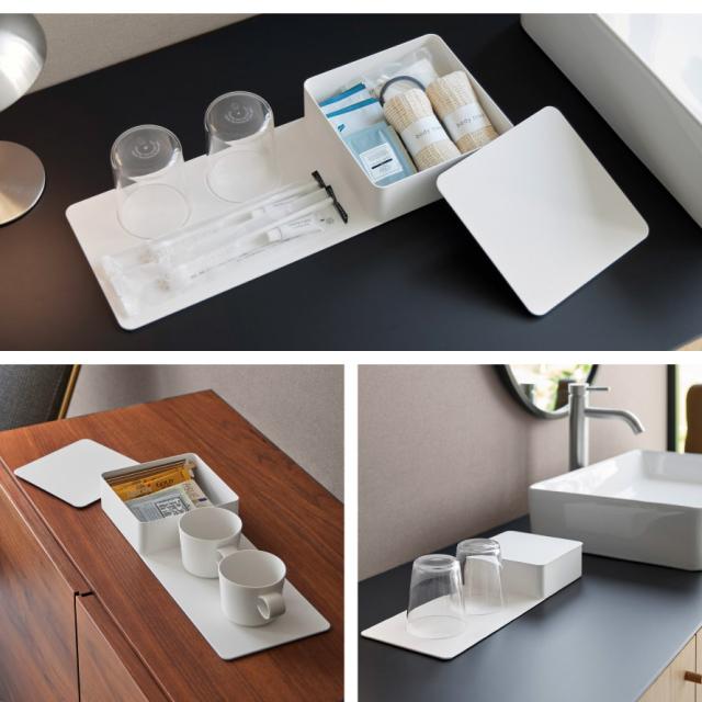 収納ボックス付きトレー タワー 山崎実業 tower ホテル アメニティ ボックス トレイ 収納 おしゃれ モノトーン ホワイト ブラック 10795 10796