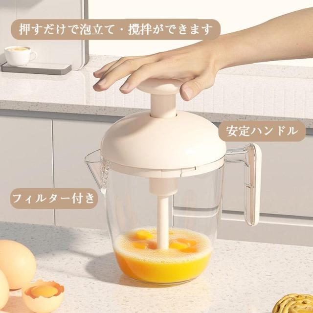 朝食作りやベーキングに最適!プッシュ式で手軽に卵を泡立てられる。