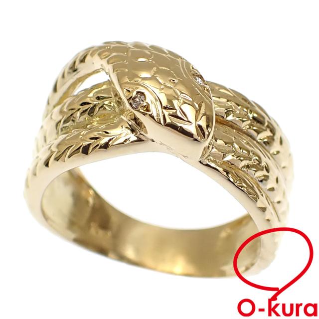 中古 ダイヤモンド スネークモチーフ リング レディース K18YG 9.5号 4.8g 指輪 750 18金 イエローゴールド