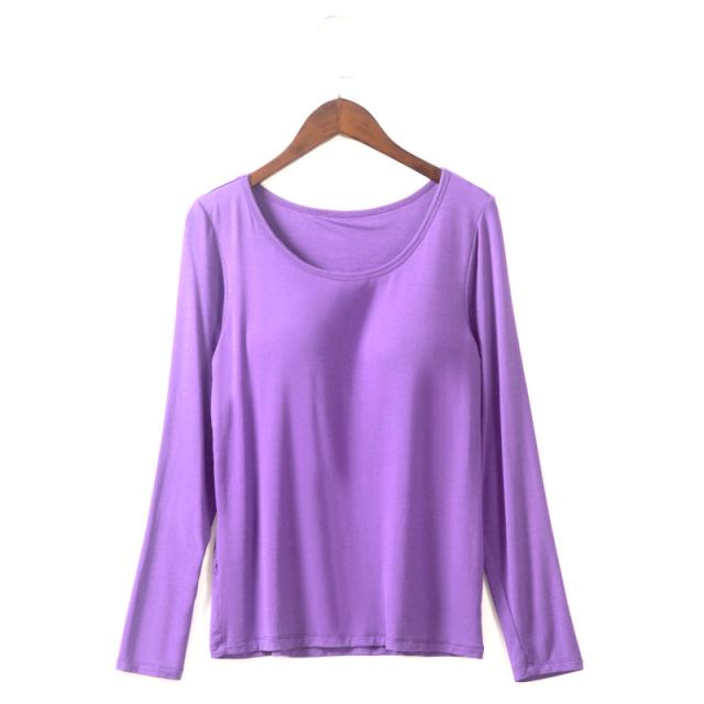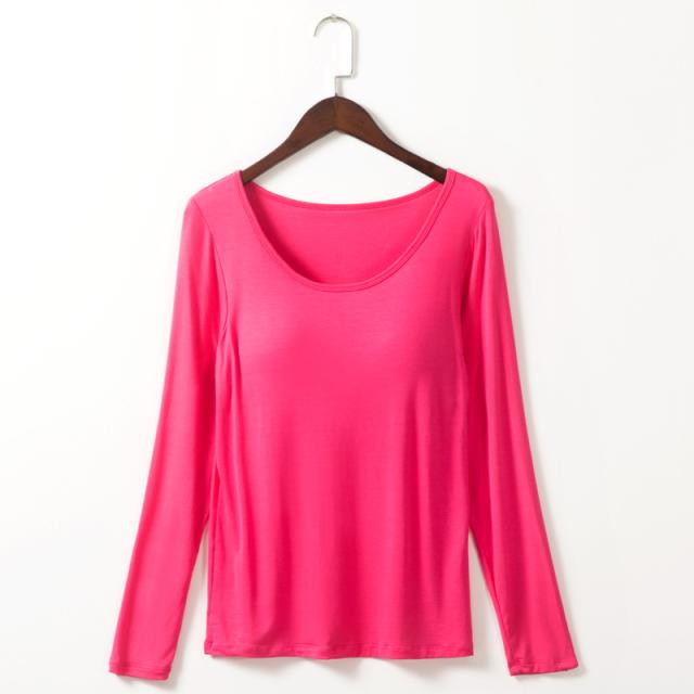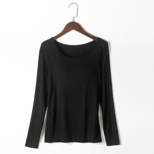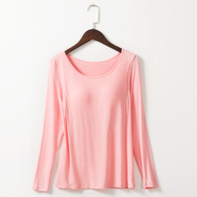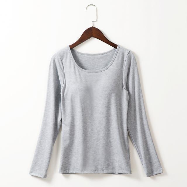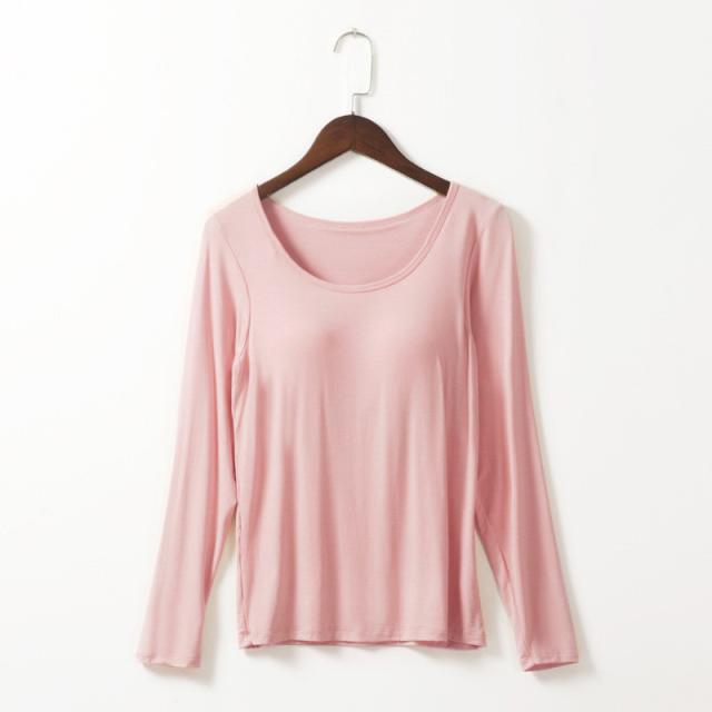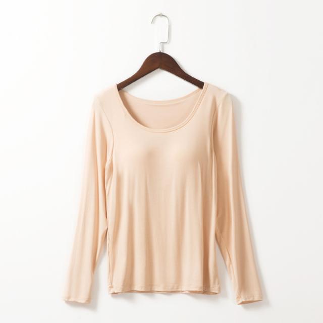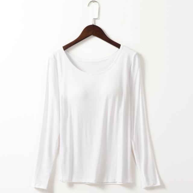 カップ付きTシャツ レディース ブラトップ 長袖 インナー ノンワイヤー パッド付き インナーシャツ 無地 ストレッチ フィット 吸汗速乾 美胸 ルームウェア 部屋着 春夏 秋冬 レディースインナー