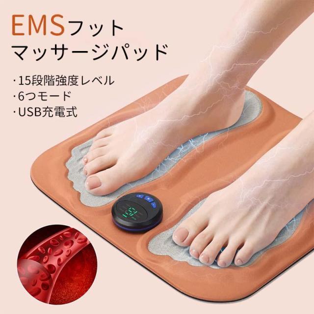 EMSフットマッサージパッド USB充電式 6モード 15段階強度 コンパクト 軽量 フットケア リラックス 足裏ケア 持ち運び便利