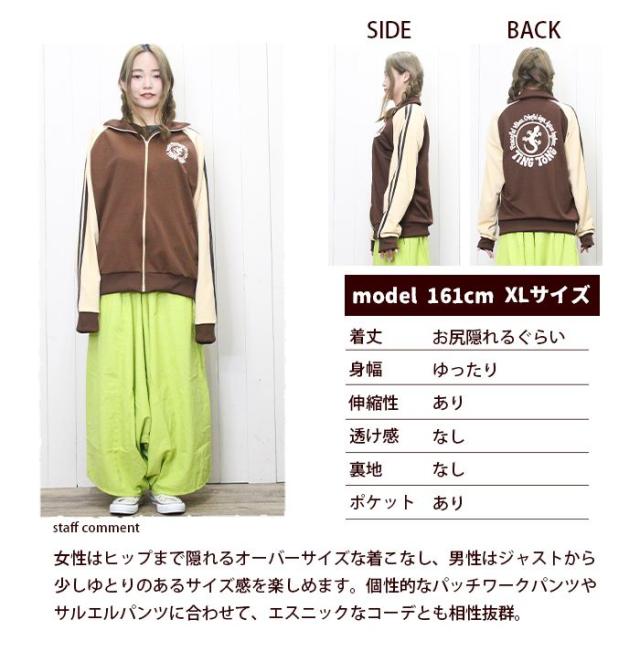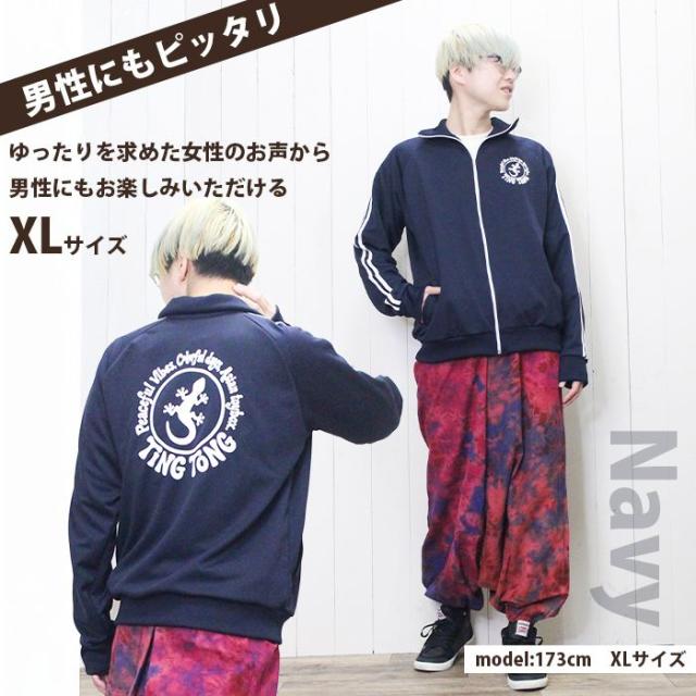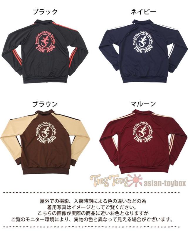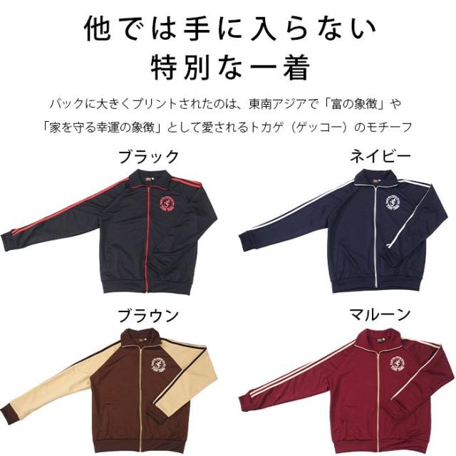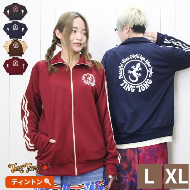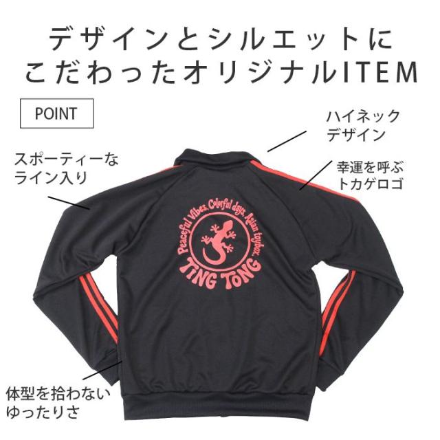 トラックジャケット 長袖 ジップアップ 羽織り メンズ レディース 男女兼用 【SPT】 ティントン オリジナル幸運のゲッコーロゴ ジャージ ライン入り 大きいサイズ ゆったり 古着風 個性的