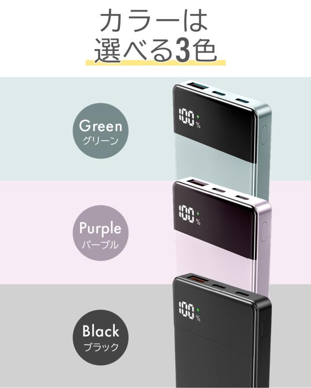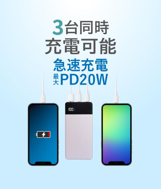 モバイルバッテリー 10000mAh 準固体電池 PD20W 発火しにくい 衝撃に強い 急速 高速充電 長寿命 3台同時充電 PSE認証 GH-SSMBPAEC100 グリーンハウス