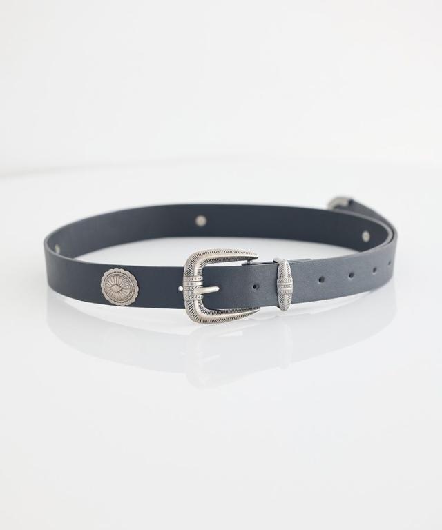 存在感のあるコンチョデザインと、彫り模様が美しいバックルが目を引くベルトです。シンプルな装いにプラスするだけで、コーディネートが一気にこなれた印象に仕上がります。程よい幅感で主張しすぎず、ワンピースやデニム、スカートなど幅広いスタイルに合わせやすいのも魅力です。ウエストマークすることで全体のバランスが整い、自然とスタイルアップが叶います。カジュアルにもきれいめにもなじみやすく、季節を問わず活躍します。毎日のコーデにアクセントを加えたい方におすすめの一本です。