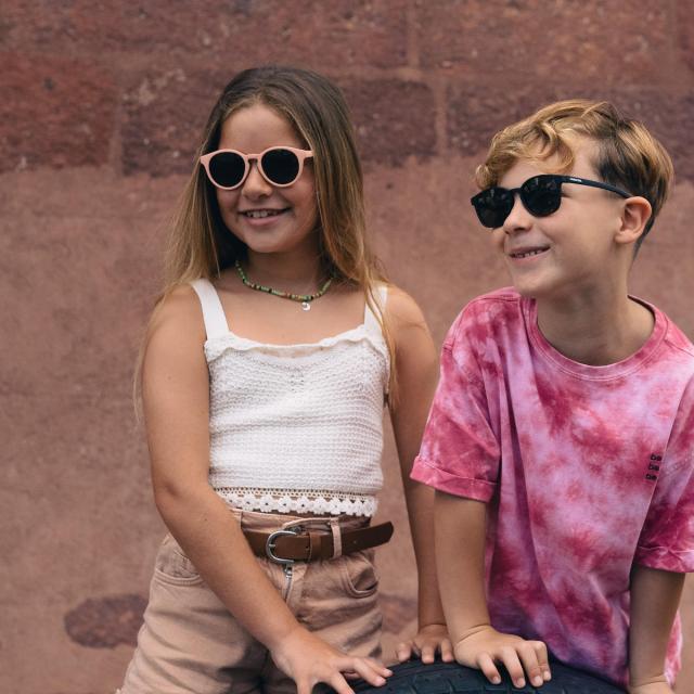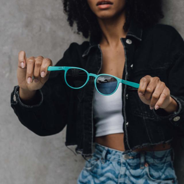フレームにリサイクルされたタイヤゴムを使用した環境に優しいキッズサイズのサングラスです。タイヤの材料として使用されるゴムは、地球に最も影響を与える廃棄物の一つです。色味がくっきりとしたマット素材のフレームで、耐久性があります。