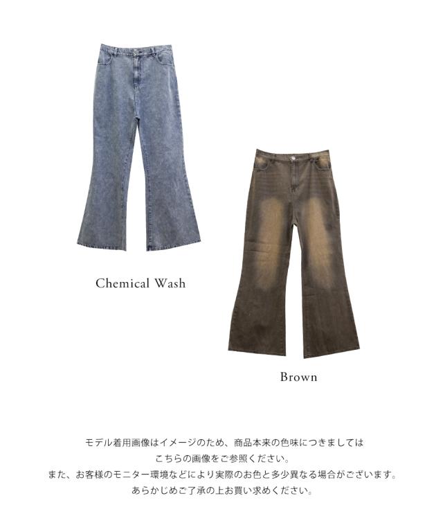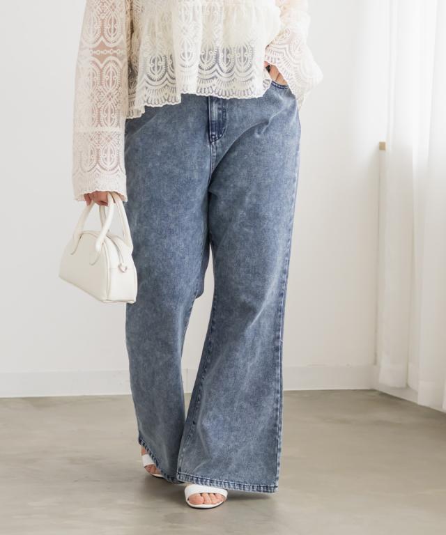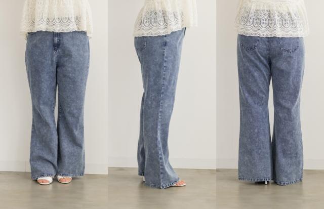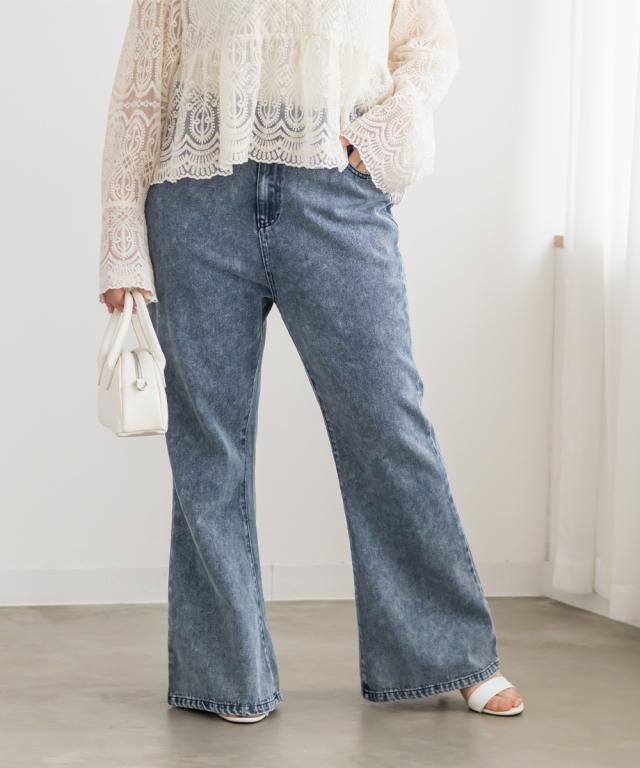 大きいサイズ/レディース/3L/4L/ウォッシュドデニムフレアパンツ