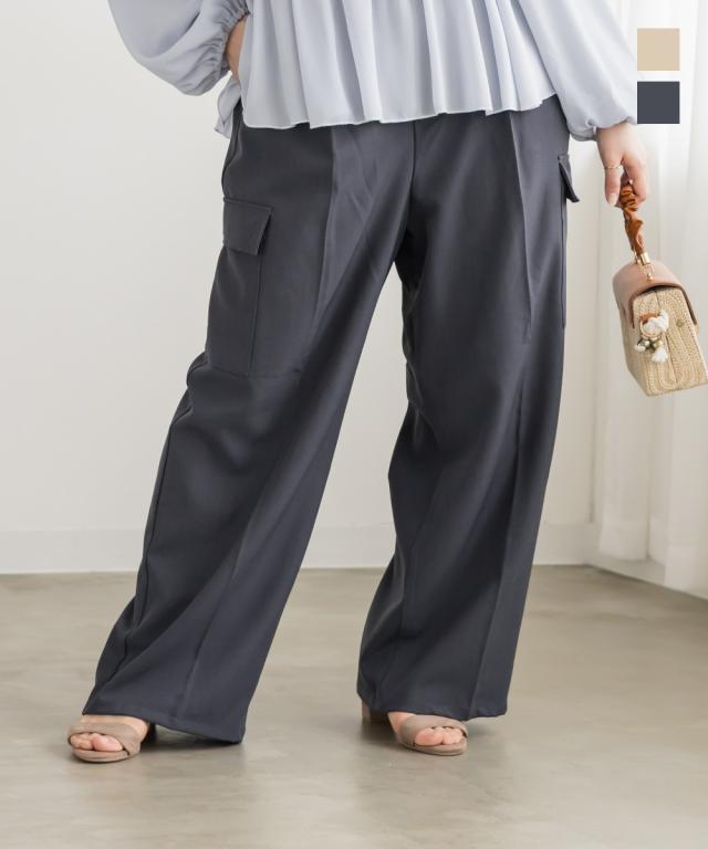 大きいサイズ/レディース/3L/4L/ワイドカーゴタックスラックスパンツ