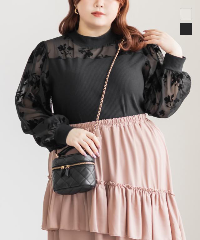 大きいサイズ/レディース/3L/4L/フロッキー花柄切替リブプルオーバー