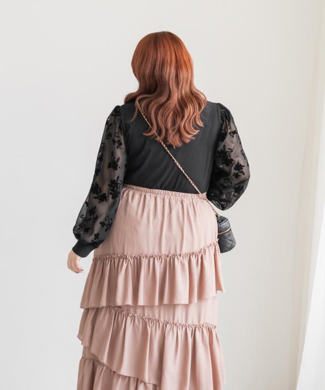 3Lサイズ/ブラック着用 maika:161cm/普段トップス3L・ボトム3L~4L着用