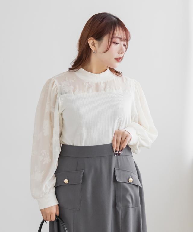 | 3Lサイズを着用して、ぴったりでした!3Lのサイズ感でいつも通りのサイズ選びで問題なさそうです。後がボタン付きの涙開き使用になっているので着脱も問題なくできました!首元・袖口もリブカットソー生地になっていて窮屈感が無い着心地です!程よい透けの袖に施されたフラワーデザインが可愛すぎず大人っぽいアクセントになります! |