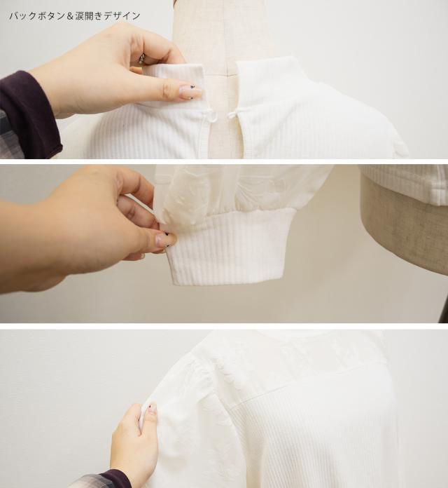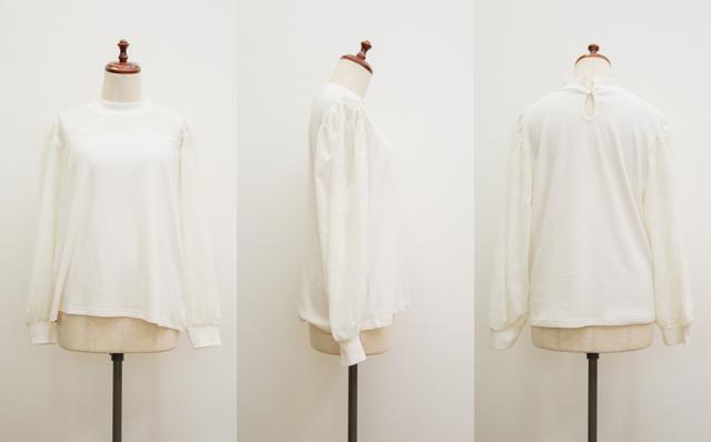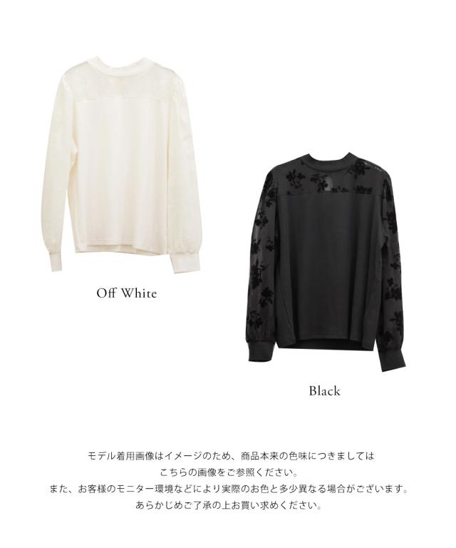 | 程よく伸縮性のある柔らかなリブ仕様のカットソー素材です。 (袖・襟ぐり部分はフロッキー加工の施されたシアー素材です。) |