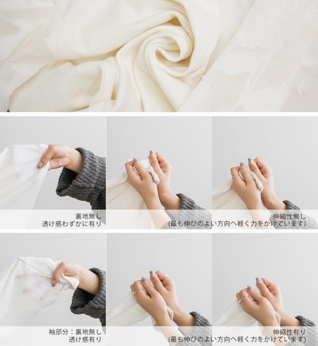 裏地無し、透け感有り、伸縮性有り 02オフホワイト,03ブラック