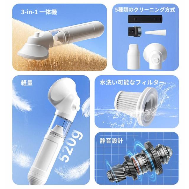 ペット掃除機 猫 犬 電動クリーナー 超静音 3in1 複合機 猫 1台3役 家庭用 USB式 掃除機 吸引式 大風量 抜け毛 毛玉 ペット用