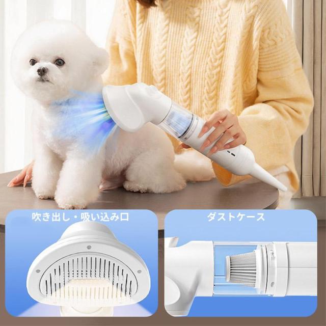 ペットのケアで手間取ることはもうない!この 3-in-1 一体機は、吸引、ブラッシング、ドライの三つの核心機能を集約し、ペットの抜け毛処理、毛並み整え、乾燥を一貫して完成させます。別々の機器を用意する手間を省き、室内の毛玉散らしを防ぎながら、ペットにストレスを与えずにスムーズなケア体験を提供します。
