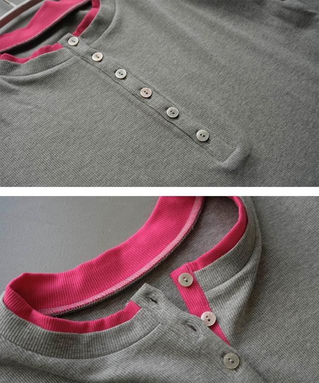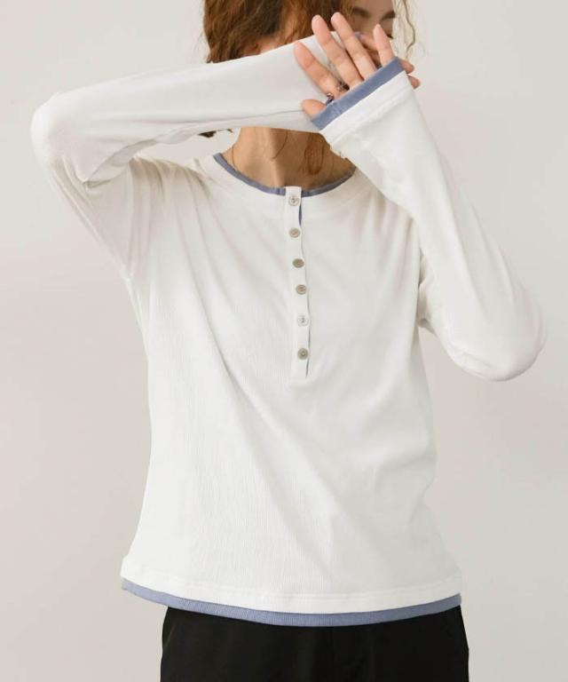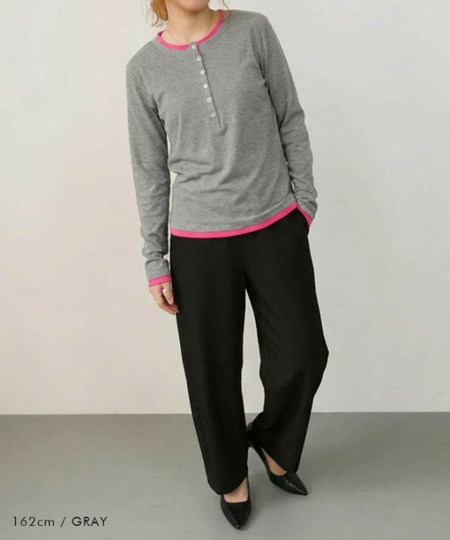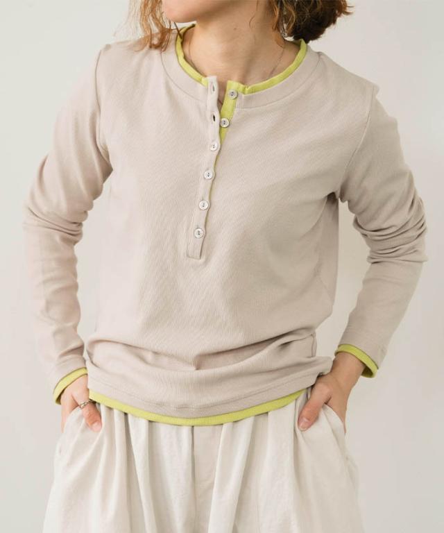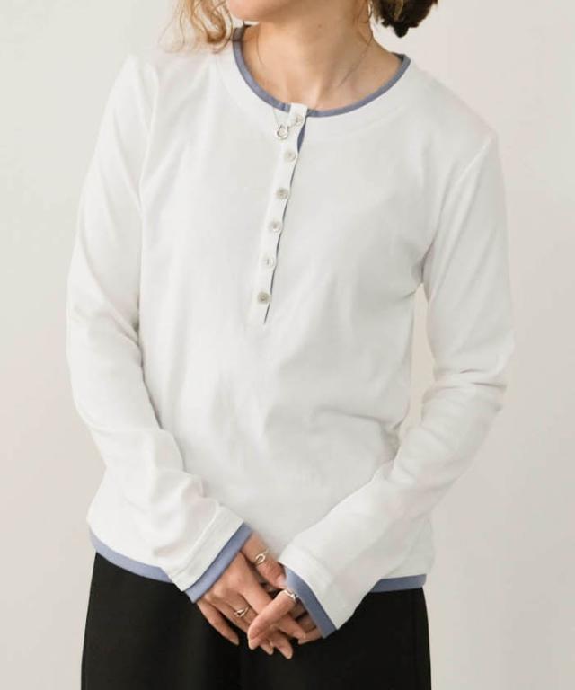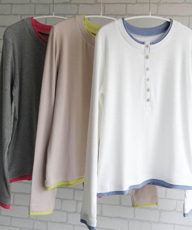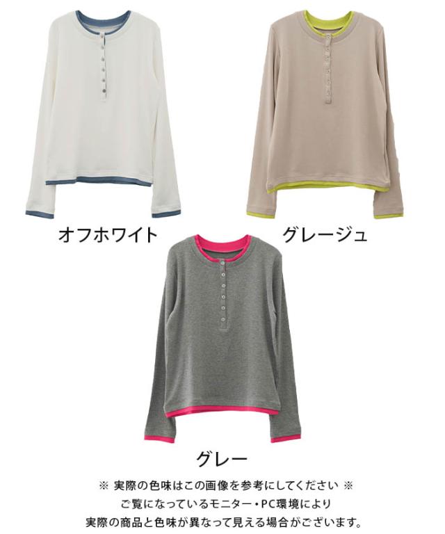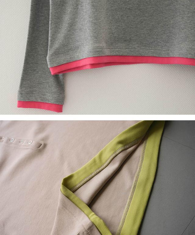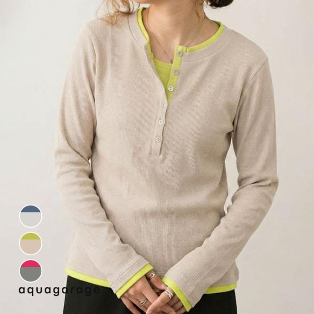 ≪ゆうメール便配送20・代引不可≫ バイカラーヘンリーネックトップス 春 夏 秋 M レディース アクアガレージ aquagarage