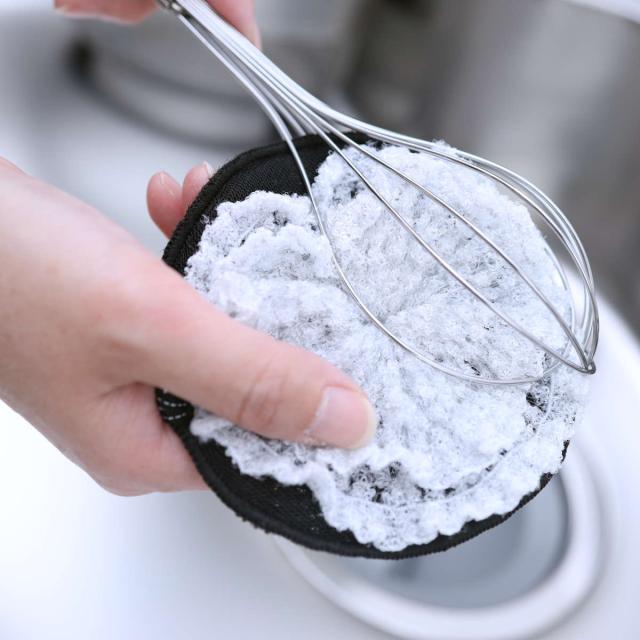 薄型で手に馴染みやすく、水筒のフタや泡立て器などの細かい隙間にも入り込みやすい形状のスポンジです。普通のスポンジでは届きにくい細部の汚れまできれいに洗えます。
