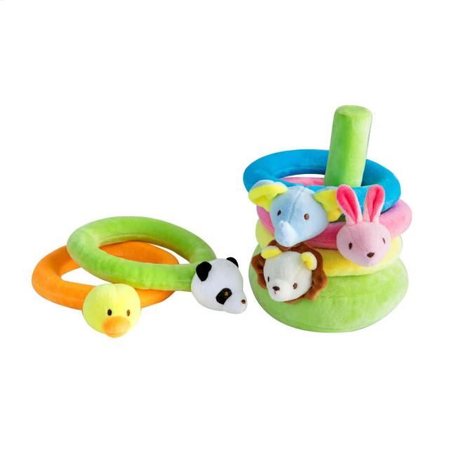 ソフトボアのやわらかい 素材で肌触りもよく、動物リングの中には鈴やビーズが入っているので、ラトルとしても使用できます。