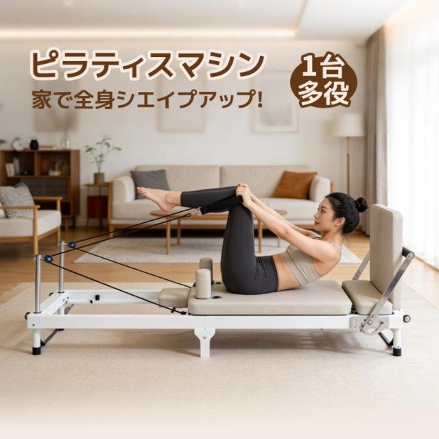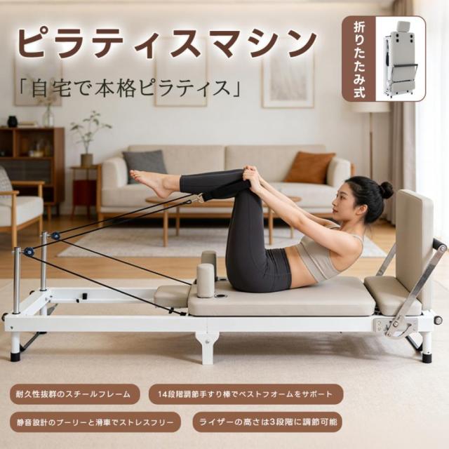 「クーポン配布中」多機能 ピラティスリフォーマー 家庭用 折りたたみ 強度調整可能 体幹トレーニング 全身エクササイズ フィットネスマシン ダイエット器具 家庭用 自宅用 健康器具 日本語説明書