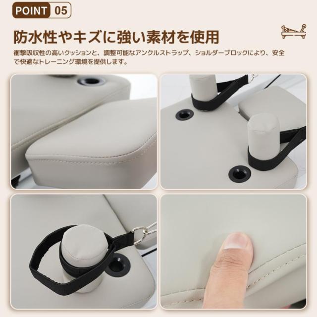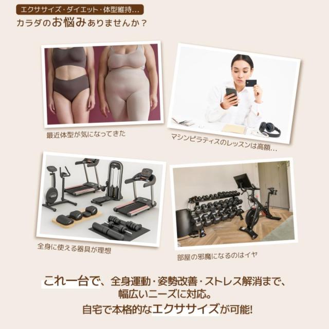 【一台で全身トレーニング】多種多様なエクササイズに対応し、コア、ヒップ、背中、腕、脚など全身の筋肉を効果的に鍛え、姿勢改善や柔軟性向上にも寄与します。