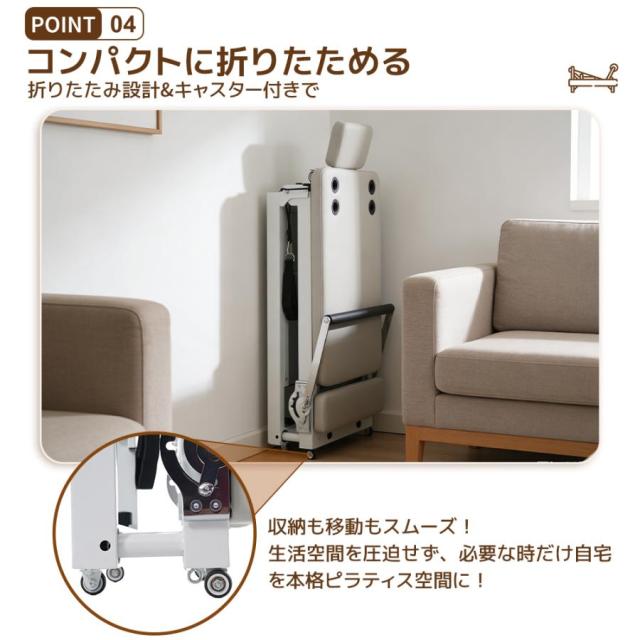 【コンパクトに折りたためる】折りたたみ設計&キャスター付きで 収納も移動もスムーズ!生活空間を圧迫せず、必要な時だけ自宅を本格ピラティス空間に!