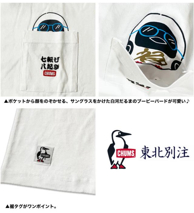 【数量限定】 CHUMS チャムス 東北別注 半袖Tシャツ Sunglasses Booby Bird 白河だるま Pocket T-Shirt ポケT 胸ポケット オーバーサイズ ゆったり ビッグシルエット USAコットン CH01-2834 CH11-2834 メール便対応