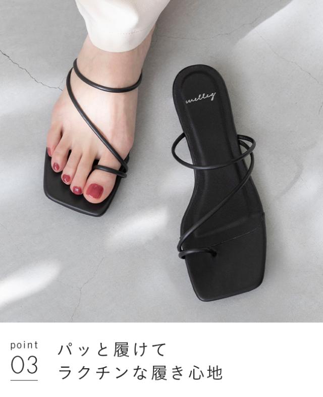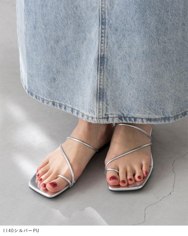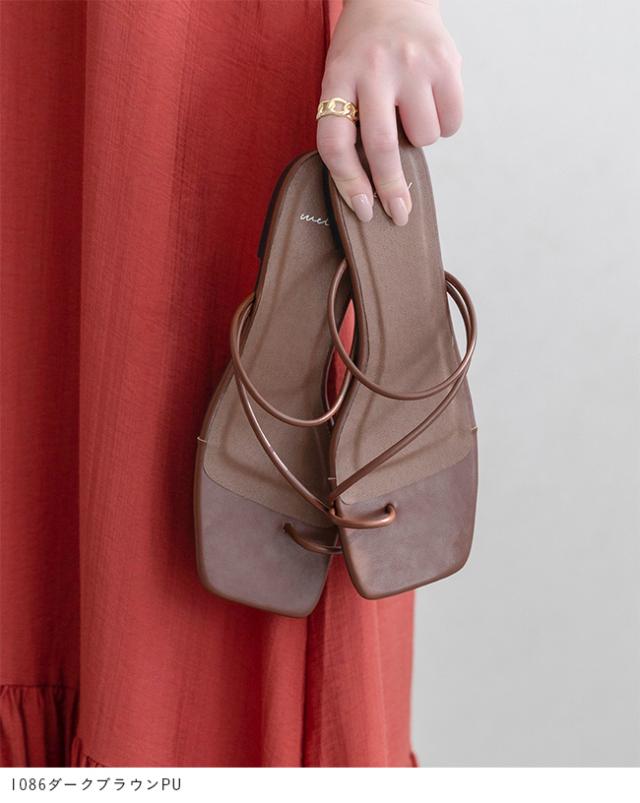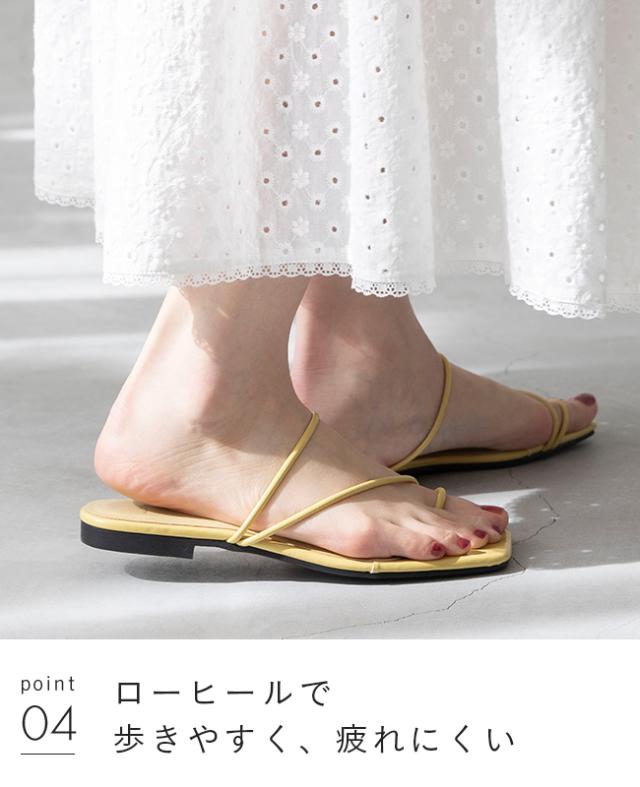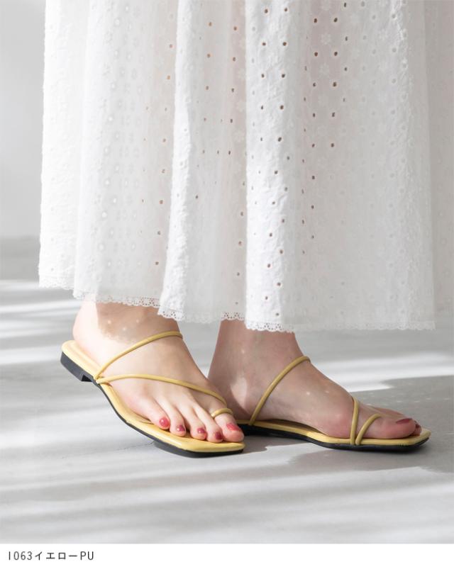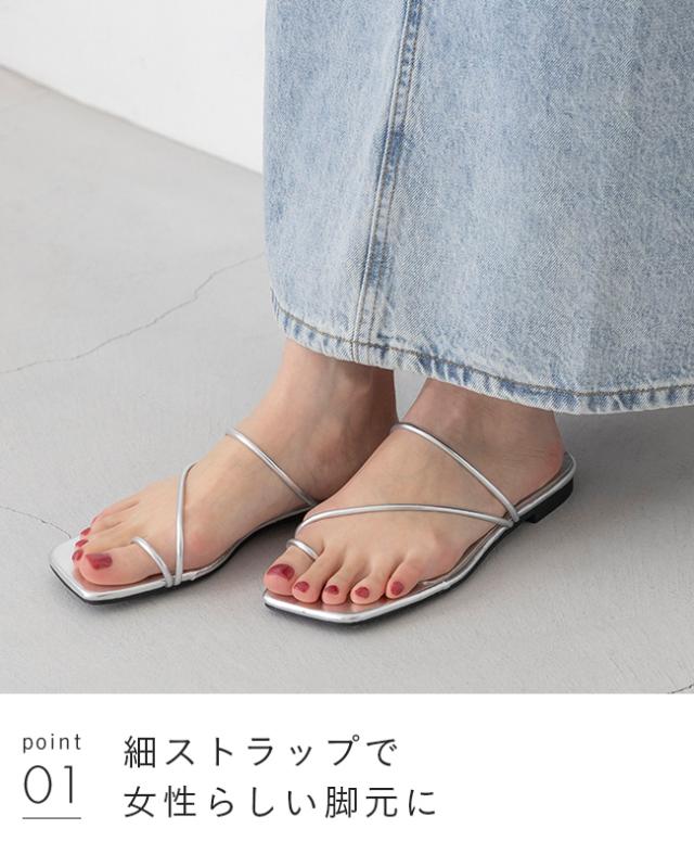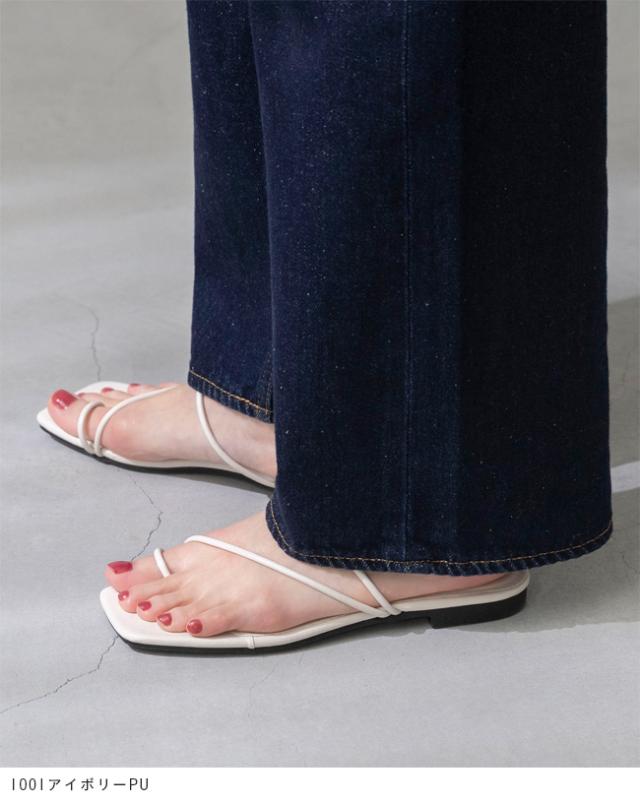 ストラップサンダル レディース ぺたんこ ローヒール 痛くない 歩きやすい スクエアトゥ つっかけ 細ストラップ 送料無料