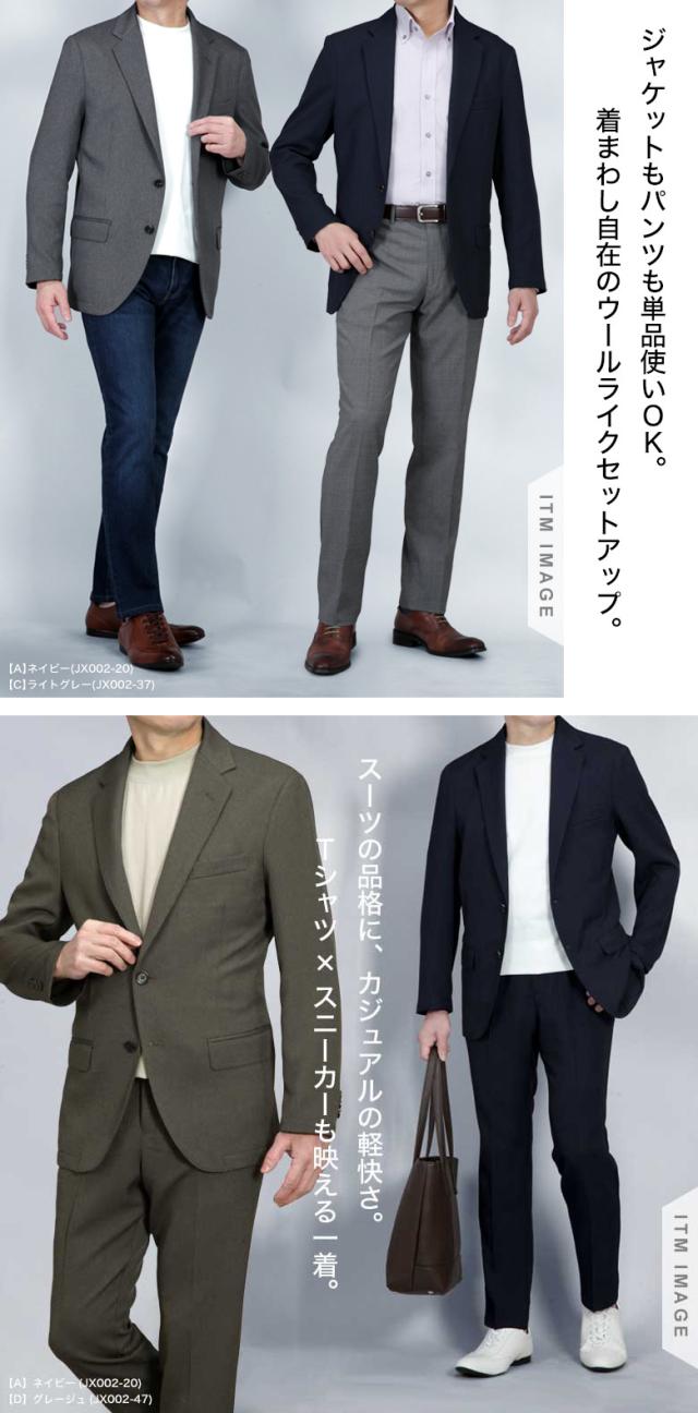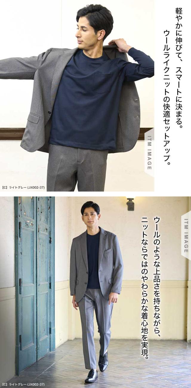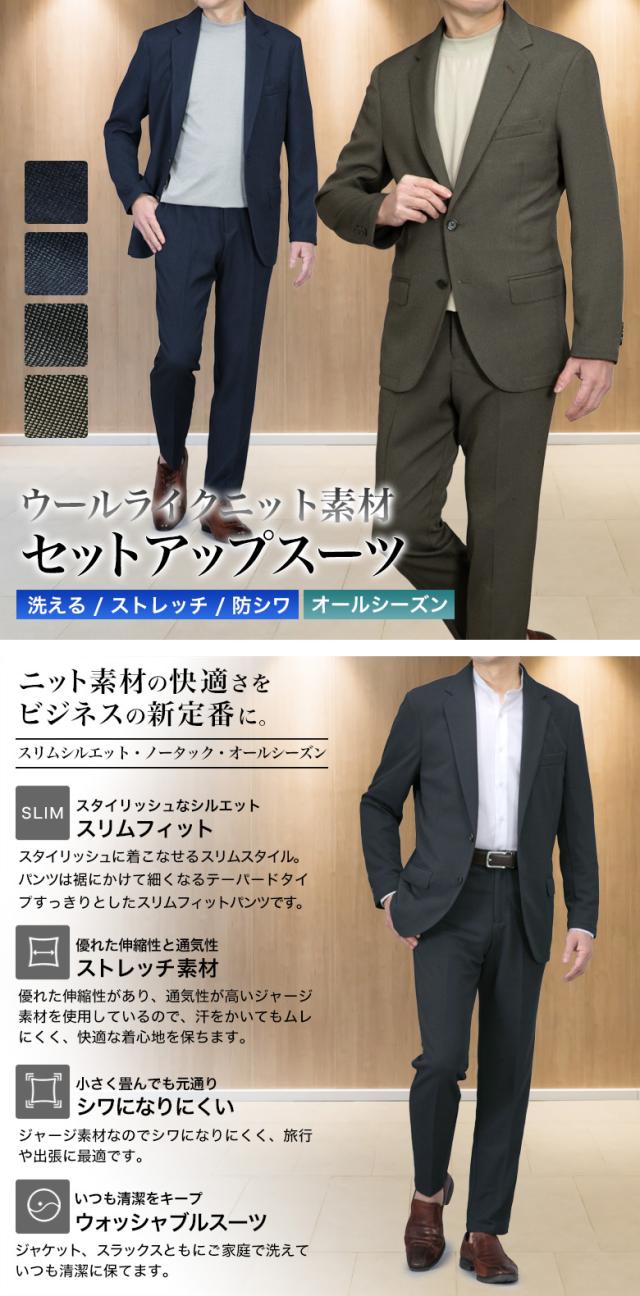 セットアップスーツ 上下セット ウールライク ストレッチニット素材 スーツ仕立て スーツ ノータック ストレッチ 上下洗える ウォッシャブル 防シワ カジュアル ビジネス 春夏秋冬 リモートワーク おしゃれ