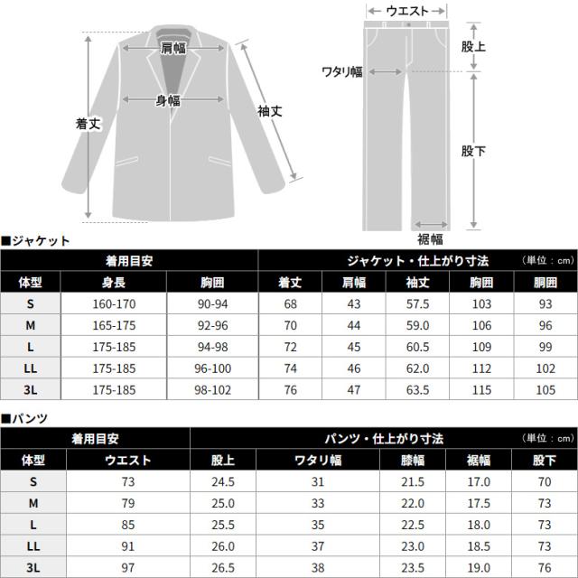 | ・ジャケット:ポリエステル100% ・パンツ:ポリエステル100% |