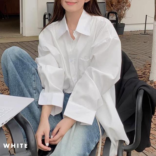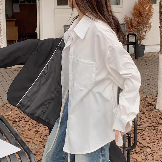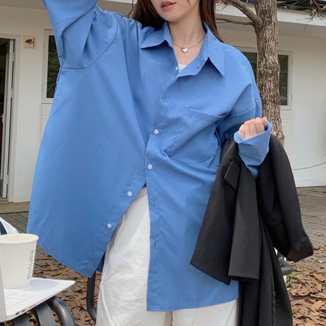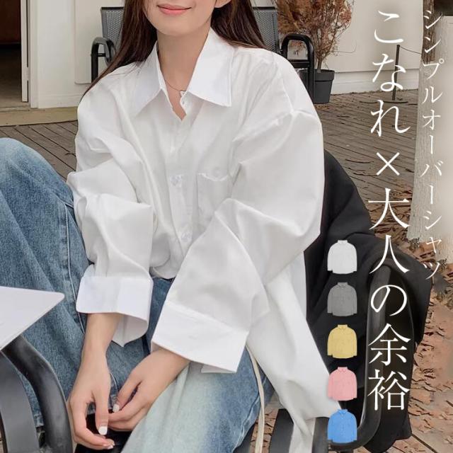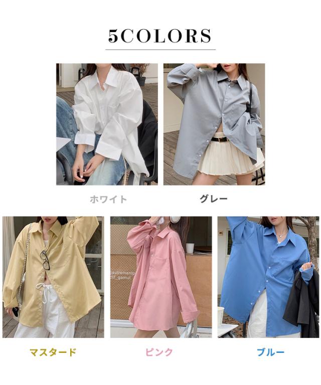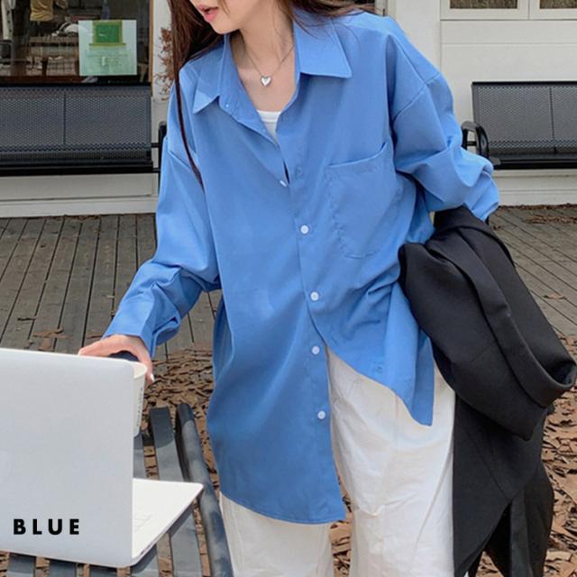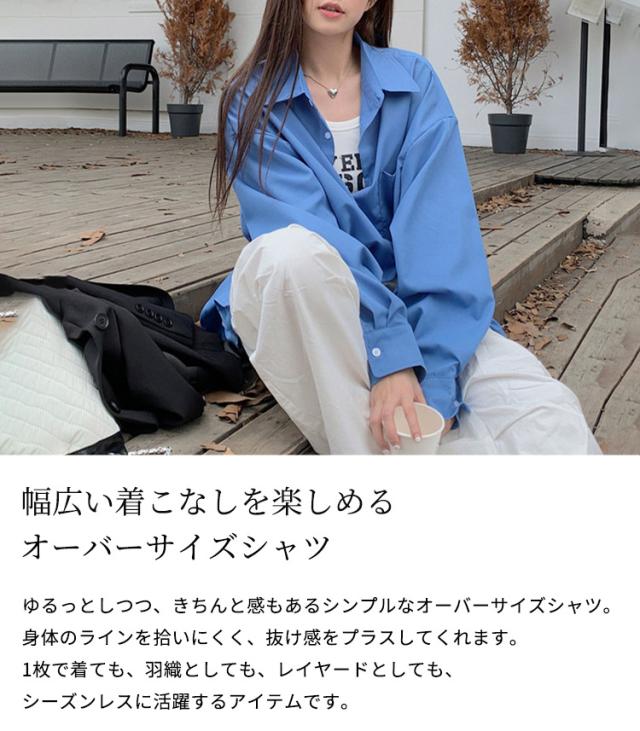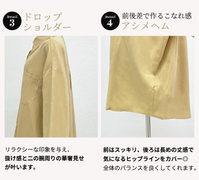 「大人の余裕感じるゆったり感」シャツ ブラウス レディース トップス 長袖 シンプル オーバーサイズ 羽織 ゆったり レギュラーカラー ドロップショルダー 前後アシンメトリー 胸元 ポケット 無地
