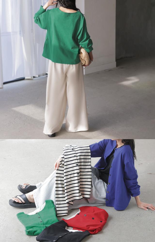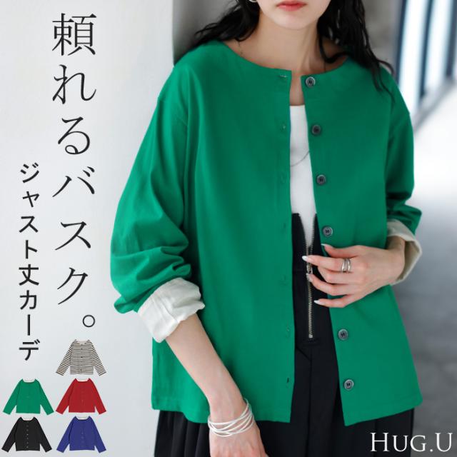 ロンT ティーシャツ ロンTカーディガン ロンTカーデ カットソー 綿カーディガン 長袖カーディガン 配色カーディガン 綿 綿100% コットン100% バスク素材 ボーダー柄 ボタン ポケット Uネック ノーカラー バンドカラー ぴったり ピッタリ 型崩れしにくい 丈夫 透けにくい 厚手 ブラック 黒色 ホワイト 白色 レッド 赤 ブルー 青 グリーン 緑 レディースファッション 旬 トレンド プラスサイズ ビッグシルエット ビッグ ビック big ビックサイズ ビッグサイズ オーバーサイズ 大きい 大きめ フリーサイズ フリー S M L LL 2L XL 3L XXL LLL カジュアル ベーシック オフィス オフィスカジュアル 着回し シンプル 大人 大人カジュアル オトナ 女性 綺麗 きれい キレイめ きれいめ 高見え 上質 上品 20代 30代 40代 50代 60代 おしゃれ お洒落 オシャレ 可愛い かわいい カワイイ カッコいい カッコイイ 春 夏 秋 冬 春夏 秋冬 HUG.U HUGU ハグユー はぐゆー