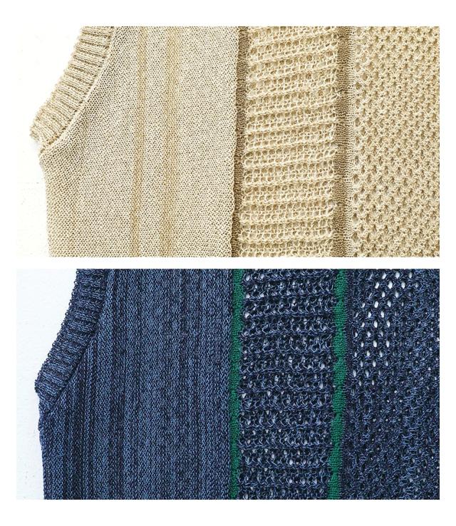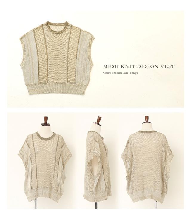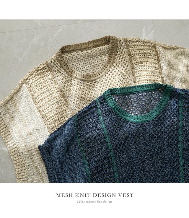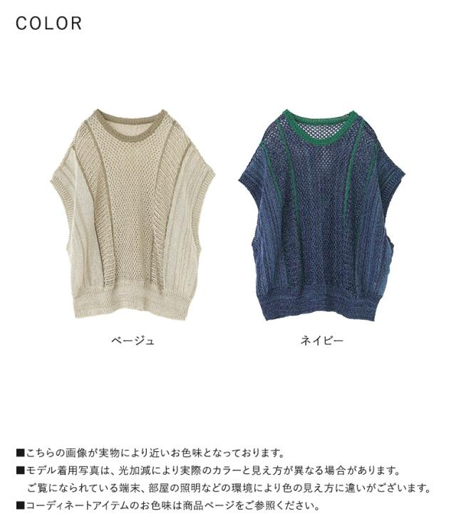 <春新作>『配色LINE入りメッシュ編みベスト』※メール便可※【10】[ニットベスト レディース ニットトップス メッシュニット クルーネック ノースリーブ 配色ライン 春 夏 秋 オシャレウォーカー]