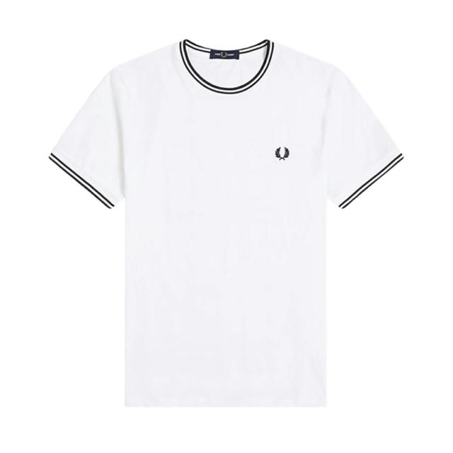 商品名:フレッドペリー FRED PERRY Tシャツ 半袖 クルーネック ロゴ 刺繍 ティップライン コットン レギュラーフィット M1588V 100 メンズ レディース ユニセックス ホワイト