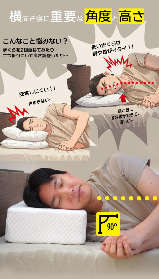 まくら ピロー 横向き寝の方の横向き寝のために作られた横向き寝まくら 横寝枕 浮遊立方 いびき対策